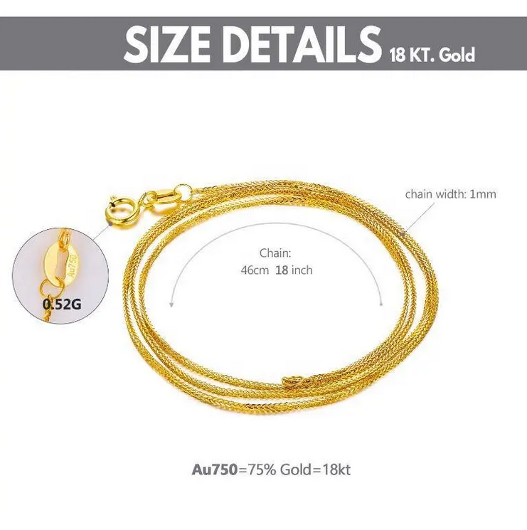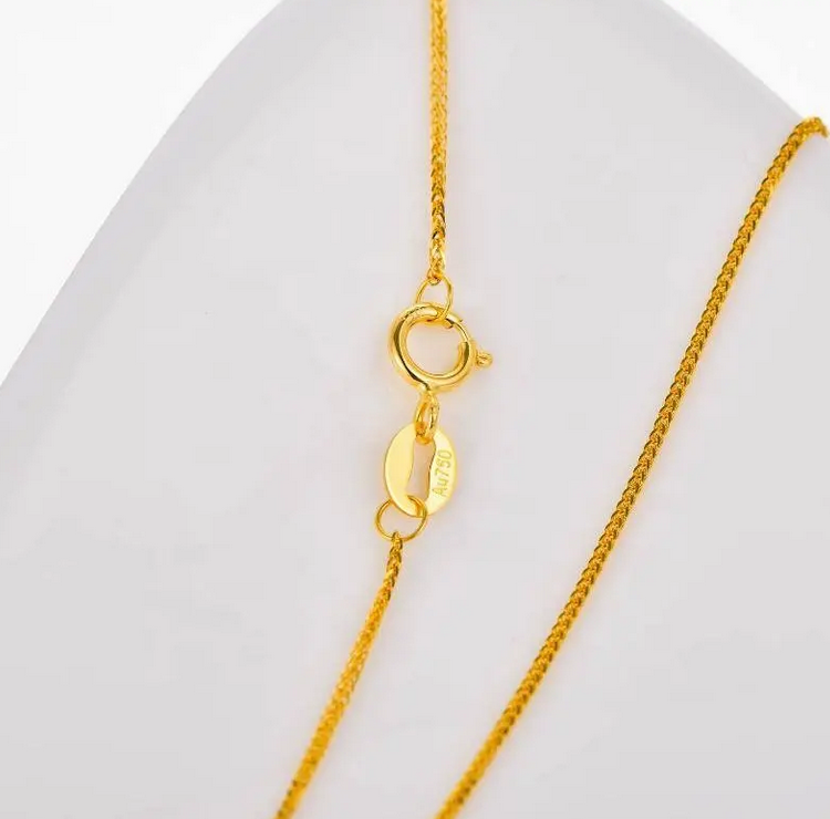 Solid 18k Gold Braided Wheat Chain Necklace